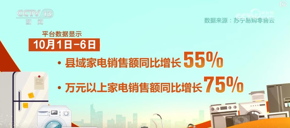 平台数据显示,10月1—6日,县域家电销售额同比增长55%,万元以上家电销售额同比增长75%,家电家居套购订单量同比增长135%。