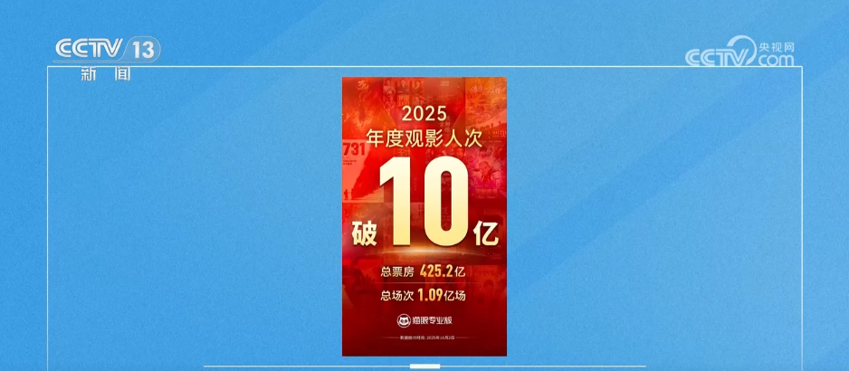 截至10月7日中午,2025年国庆档电影观影人次突破4000万。《志愿军:浴血和平》《731》《刺杀小说家2》霸榜前三。更值得一提的是,就在10月2日,今年电影市场以425.2亿元总票房、10亿观影人次的成绩,提前3个月超越去年全年总量,创下新高。