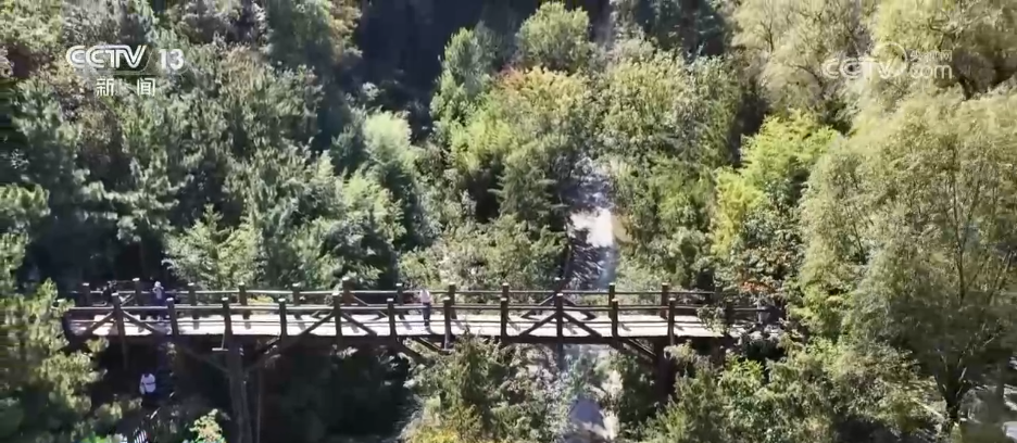 眼下秋高气爽,正是进山徒步的好时节,我就先替大家来打个卡,探寻一下九如山的最佳赏秋路线。现在我正沿着九如山的特色木栈道行进,它古朴曲折,不抢秋色,但是却串起了一条绝美的观赏路线。