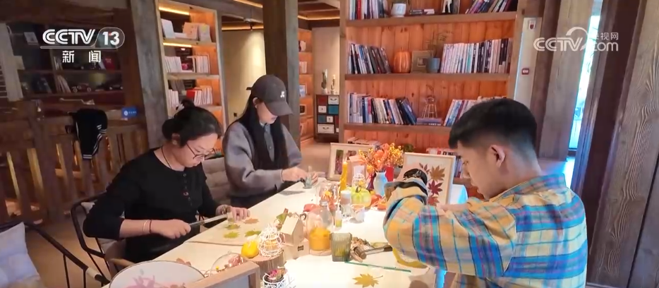 要说九如山秋天最具特色的体验,少不了各式各样的手作项目:枫叶diy相框、植物拓印帆布包,树叶浮游瓶……游客可以在山中的手工作坊,解锁各种“捡秋”创意,把九如山的秋天“打包”带回家。