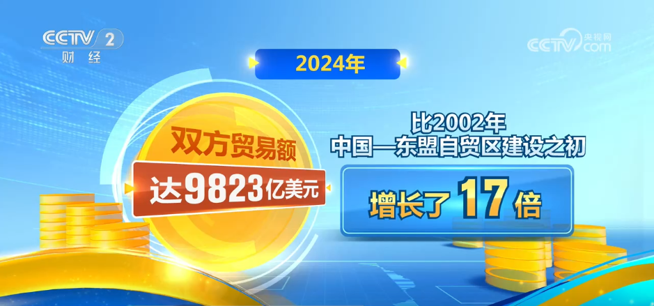 中国和东盟互为第一大贸易伙伴和重要投资伙伴。2024年双方贸易额达9823亿美元,比2002年中国—东盟自贸区建设之初增长了17倍。今年前三季度,我国自东盟进口的农产品增长了15.3%,其中,通过中老铁路这条“黄金大通道”进入中国市场的水果增长了37.8%。东盟连续8年是我国农产品的第一大贸易伙伴。