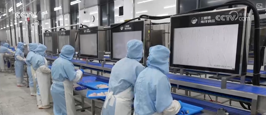 为了应对销售高峰期,目前,这家企业每天都要加工超过50吨的大黄鱼。在这里,一条大黄鱼的各个部位都有利用价值,鱼头鱼骨用来熬汤,鱼腩做成无刺鱼柳,鱼下巴做成特色小吃。