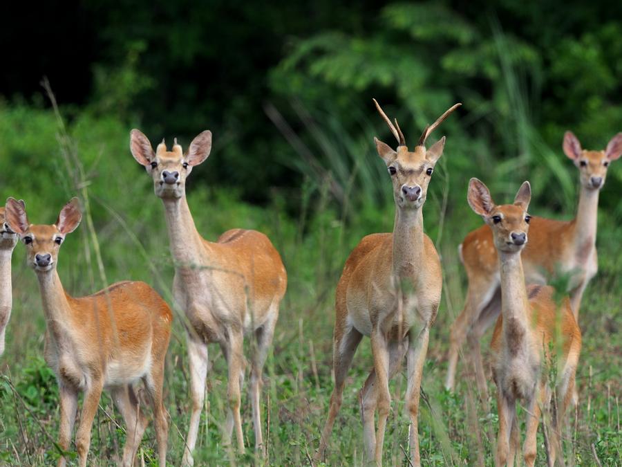 生活在海南热带雨林国家公园中的坡鹿。新华社发