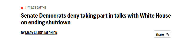 △美联社报道:参议院民主党人否认与白宫就结束政府“停摆”进行会谈