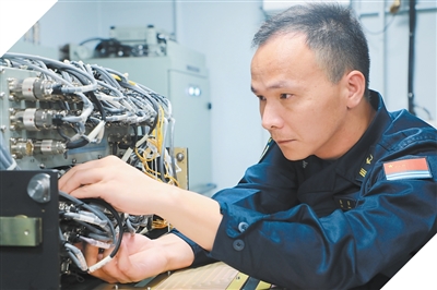 一次补给任务中,正在战位上操作的王佩宁,突然发现柴油阀门遥控系统上某一个比例阀警示灯亮起。“一个阀门,也有可能引发大问题。”王佩宁立刻钻进管路之间开始排查。