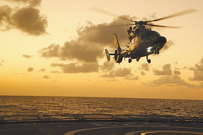 图⑤:直升机进行跨昼夜飞行训练。程建明摄