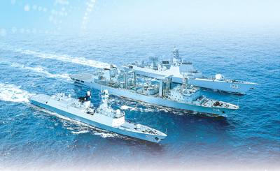 图①:编队进行海上补给。任科摄