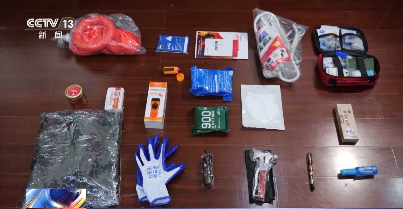 中国标准化研究院公共安全标准化研究所所长 秦挺鑫:针对火灾这个典型的场景,我们额外配了灭火毯。还有过滤式消防自救的呼吸器,以及灭火器等用品。对于洪涝灾害的扩展包,配备了漂浮式的逃生绳,分体式的雨衣,以及长效的蜡烛。针对地震这种灾害场景的地震应急包,我们额外配备了阻燃的防砸头套,还配备了一个可折叠多功能铲,能够有效应对地震场景一些应急逃生需求。