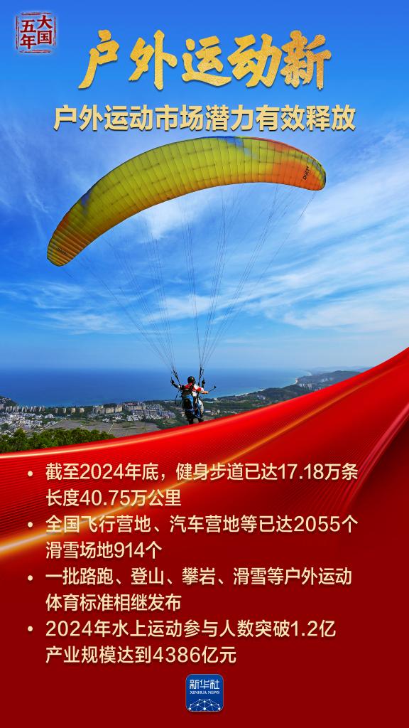 竞技场上,国旗频升国歌频传,体育健儿写下“体育大国”“奥运强国”最精彩篇章;公园里巷,全民健身,“轻体育”生活成为“健康中国”新风尚;“村超”“苏超”好戏连台、热火朝天,普通人成为新主角;新业态、新消费迸发无限活力,体育经济亿万规模助力国民经济……