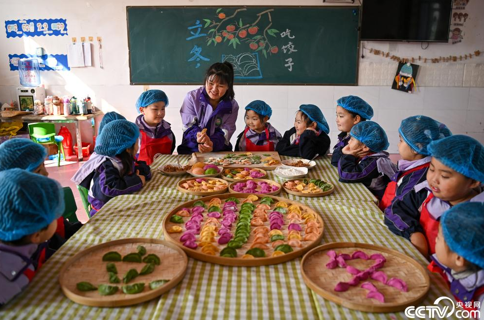 11月5日,安徽省亳州市谯城区一幼儿园开展“包饺子 迎立冬”主题活动,小朋友在老师指导下学习包饺子,体验了解立冬吃饺子习俗,迎接立冬节气的到来。