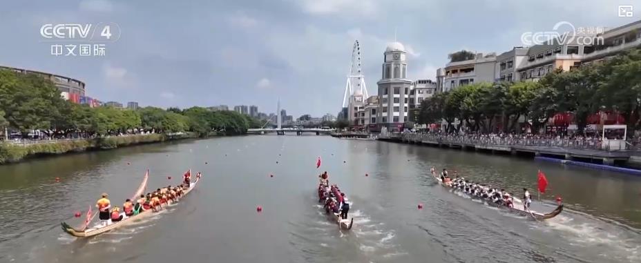 在广东中山,龙舟竞渡、非遗巡游接连登场,为节日增添喜庆气氛。白天在岐江河上,6艘龙舟在阵阵铿锵有力的鼓点中展开龙舟巡游活动。夜幕降临,万众瞩目的非遗巡游拉开帷幕,国家级非遗“六坊云龙”“西区醉龙”率先起舞,金龙腾跃、醉龙狂放,与激昂鼓点碰撞出传统民俗张力。