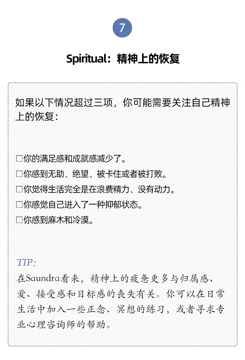 有内科医生根据研究和临床经验,提出了7种类型的休息方式,帮助人们确定,你现在最需要的是哪一种。