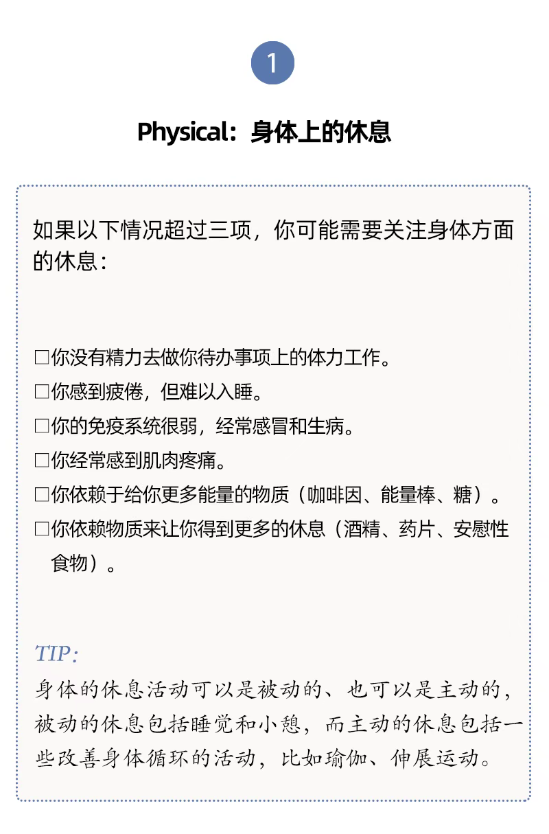 那么,到底什么样的休息才是高质量的休息,以及你现在最需要的是哪种休息?
