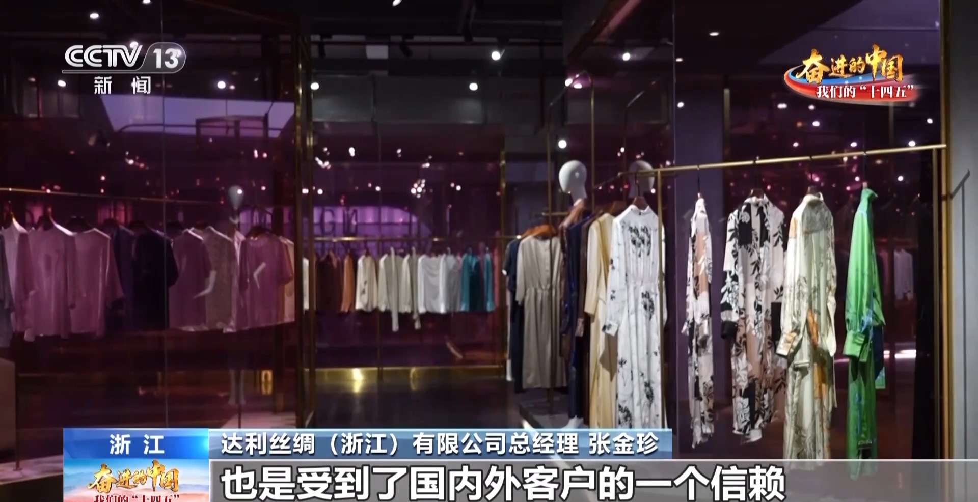 浙江湖州新南海织造厂办公室主任 李许霞:我们长期以来跟高校合作研发了一些新的产品,像重磅类的真丝、重磅类的弹力真丝、交织的一些面料,瞄准绿色低碳,新型纤维的材料做研发,赢得了市场的青睐。