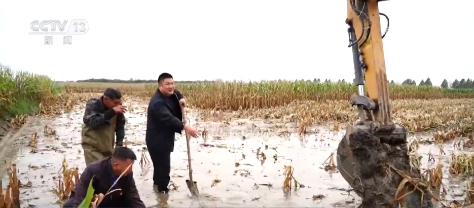 记者来到鄢陵县大马镇太平岗村时,村干部们正在组织挖掘机、抽水机排除庄稼地里的积水。村干部王红兵告诉记者,太平岗村在全镇地势最低,还有1500多亩玉米、大豆无法收割,是全镇秋收最大的一块“硬骨头”。