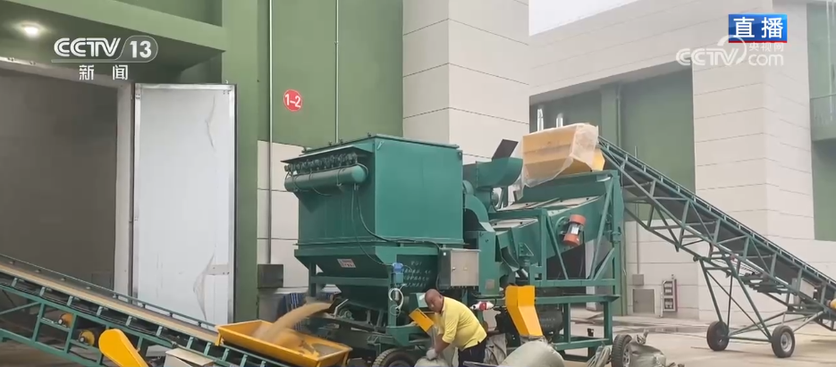 不过收下来的粮食也不能等,记者来到一个粮食烘干点,现场的轰鸣声非常大,烘干塔24小时不间断运作,为周边的农户代烘粮食。