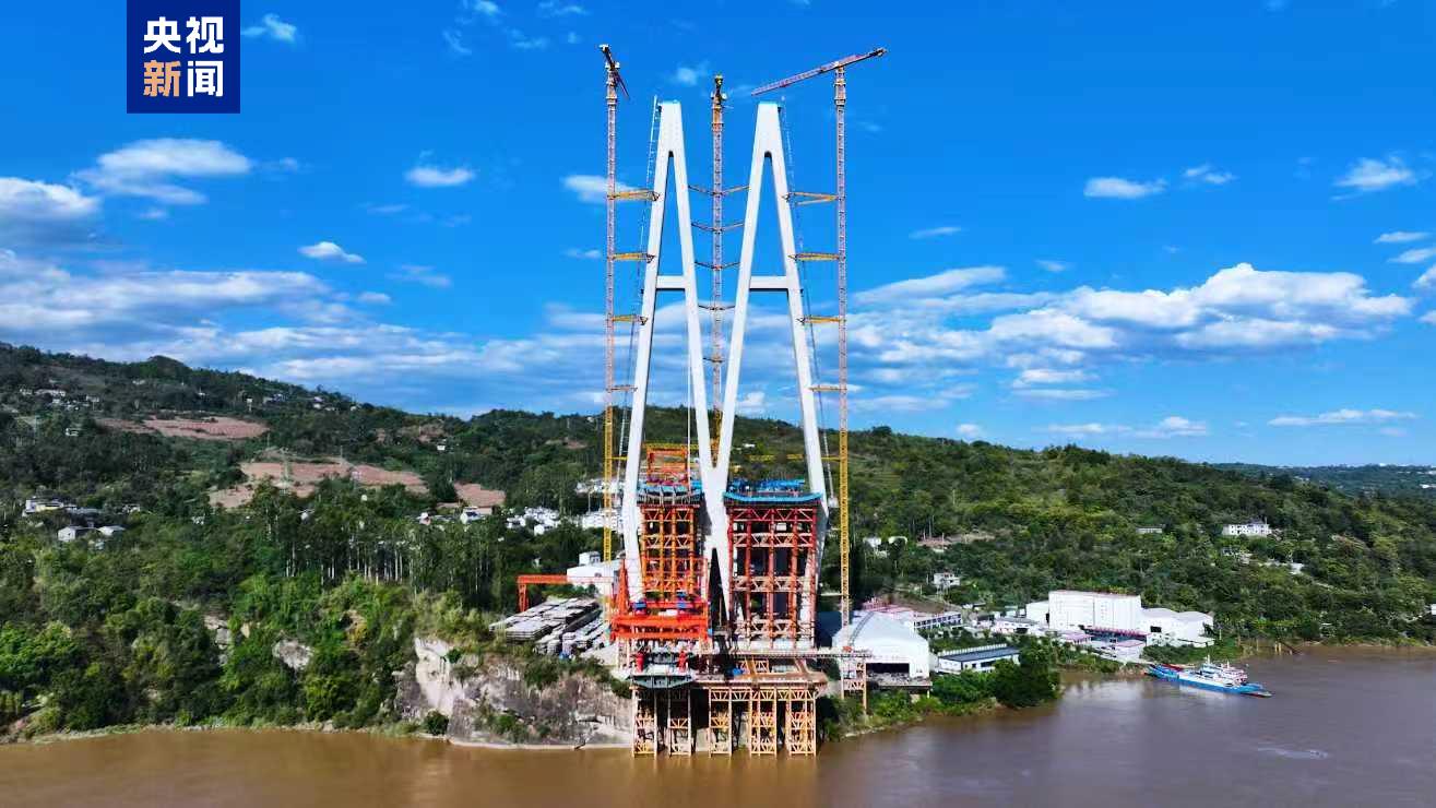 石沱长江大桥正线长度1416.9米,是渝万高铁项目建设关键节点及控制性工程,大桥建成通车后,将创下四个世界第一:世界首次采用公铁合建双联塔、世界首次采用公铁同层分幅主梁,6#主塔高253米,是世界最高双联主塔;主跨跨度608米,是世界最大公铁合建同层分幅混合梁斜拉桥。