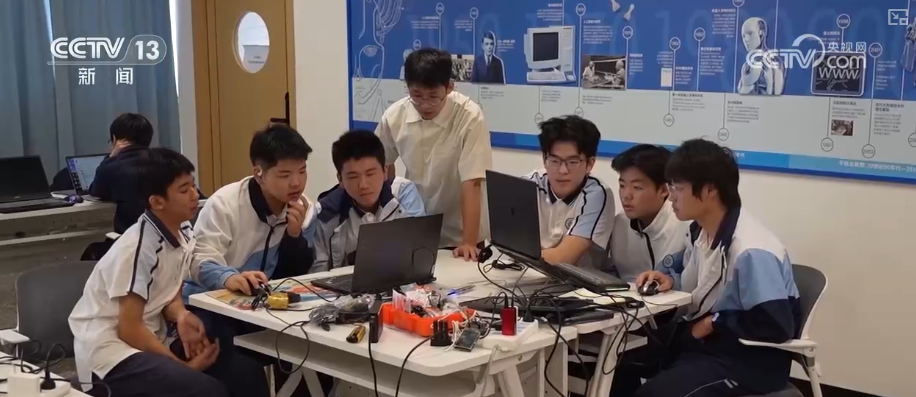 浙江温州科技高中创办于2023年,在学校6000平方米的科创中心,3D打印实验室、激光切割实验室等功能空间随时向学生开放。在这里,科技社团的学生们正在讨论如何训练大模型,学校还为他们配备了特级教师、高校导师组成的“专属教练团”。