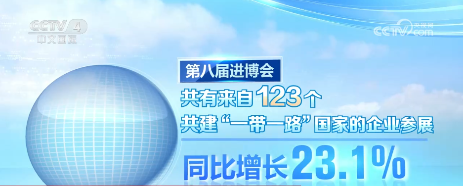 第八届进博会将有155个国家、地区和国际组织参与,4108家境外企业参展,整体展览面积超过43万平方米。其中,有来自123个共建“一带一路”国家的企业参展,同比增长23.1%;非洲企业参展数量同比增长80%。