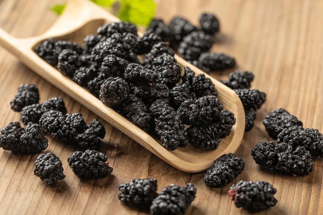 桑葚味甘、酸,性寒,归心、肝、肾经,能滋阴补血、生津润燥。