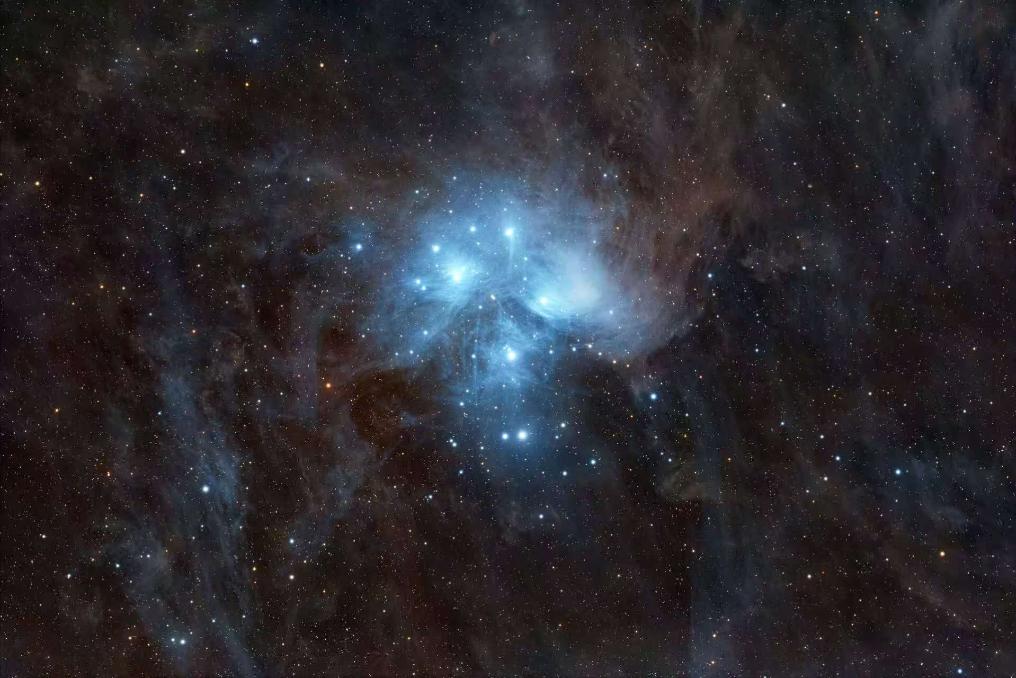 昴星团位于金牛座,拥有众多恒星,是离我们最近也是最亮的疏散星团之一。在北半球晴朗的夜空中,肉眼通常可以看到其中的六七颗亮星,因此昴星团又常被称为“七姐妹星团”。如果使用天文望远镜观测和拍摄昴星团,不仅能看到更多的恒星,还能看到亮星周围遍布着蓝色尘埃云,宛如“星星的小城”。目前证实昴星团存在的恒星数量已超过千颗。