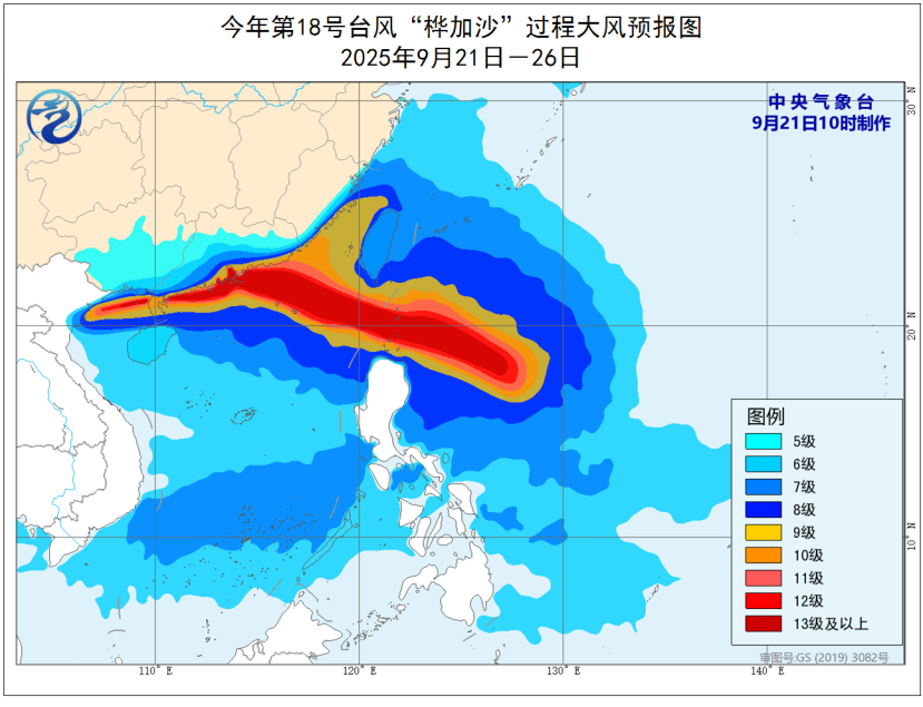 央视网消息:中央气象台最新消息,今年第18号台风“桦加沙”已于9月21日上午加强为超强台风级,并将于23日凌晨进入南海东北部,于24日凌晨至下午在广东汕尾至海南文昌一带沿海登陆,预计登陆时强度为强台风级或超强台风级(14~16级)。受其影响,21日起,我国南海北部海域及巴士海峡等海域将有强烈大风,23日起,广东、广西等地有暴雨或大暴雨,局地特大暴雨。