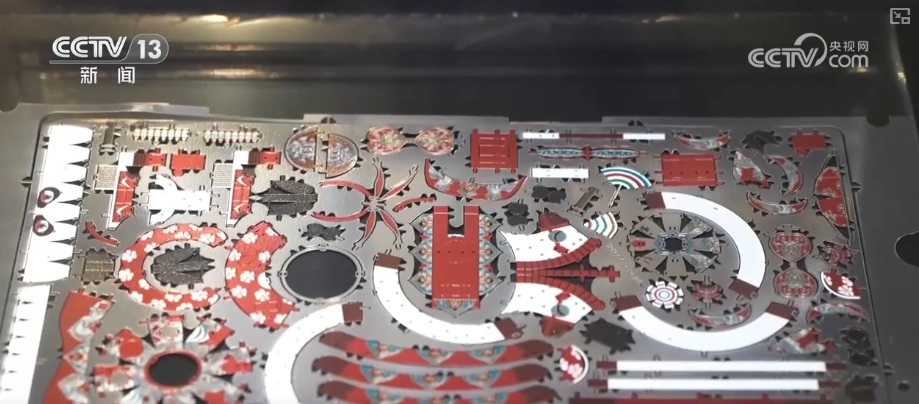如今,潮玩制造正在向高精度迈进。这家以金属薄片为核心材料生产拼装玩具的企业,利用蚀刻工艺在厚度仅有0.3毫米的黄铜薄片上精准切割出比米粒还小的卡扣,这些极其精密的配件经过拼装就能变成精美的文创产品。