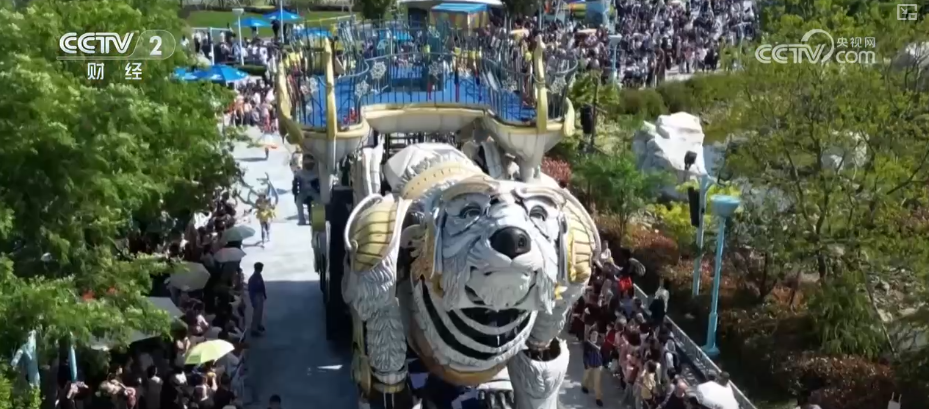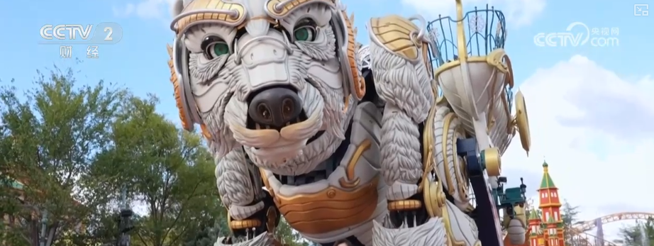上海某主题乐园文化演艺部工作人员李洪林介绍,整个熊的身体都能动,四肢的行走,还能跃起,头部以上还能做出喷水、喷雾的动作,还有面部表情,愤怒开心这些。