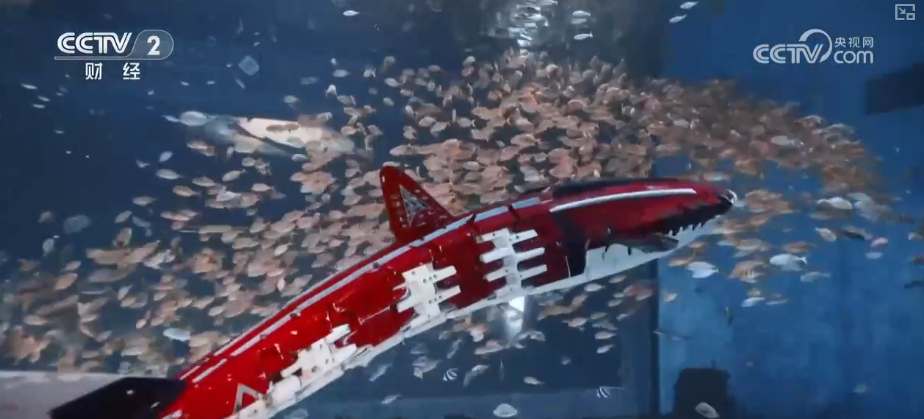这条“机甲鲸鲨”是目前世界上体积最大的仿生鱼,它身长约5米,体重达350公斤。它运用AI算法和仿生技术,能高度模拟鲸鲨在水中游弋的姿态。