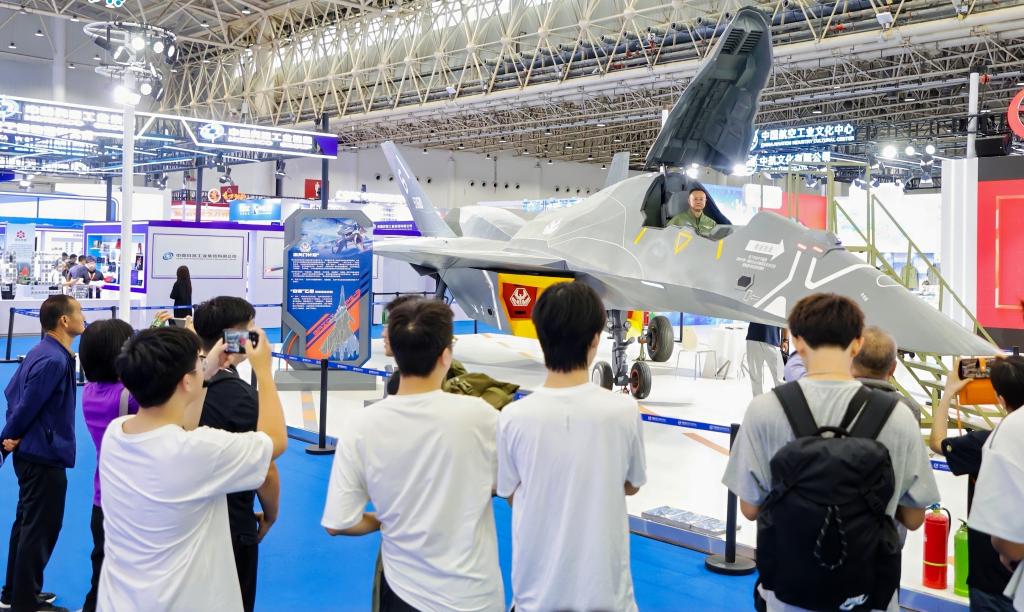 “我读高中那会儿就特别喜欢看军事杂志,现在我的孩子也对军事很感兴趣,家里那套《南天门计划》都快翻烂了。”40岁的宋晓文领着两个还在读小学的儿子,驻足在“白帝”战机模型前仔细端详着。“看到我们国家也有了这么多先进装备,特别自豪。”他说。
