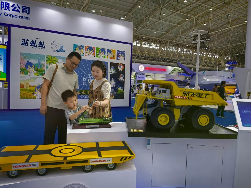 博览会上,歼-20、福建舰、长征五号火箭等大家听过却难以近距离接触的装备,以可触、可感、可互动的方式,来到了寻常百姓身边。拿着刚买的舰载战斗机模型,6岁的艾辰宇细细观察着战机的构造,兴奋地说:“我准备把它放在书桌上,每天都看得到。”