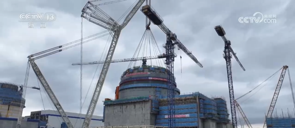 在3号机组不远处的4号机组,不久前也刚刚完成了反应堆厂房封顶。为了高效便捷作业,核电站采用了模块化施工,动辄数百吨的模块先各自独立完成拼装,然后就能像搭积木一样,高效完成整体拼装。