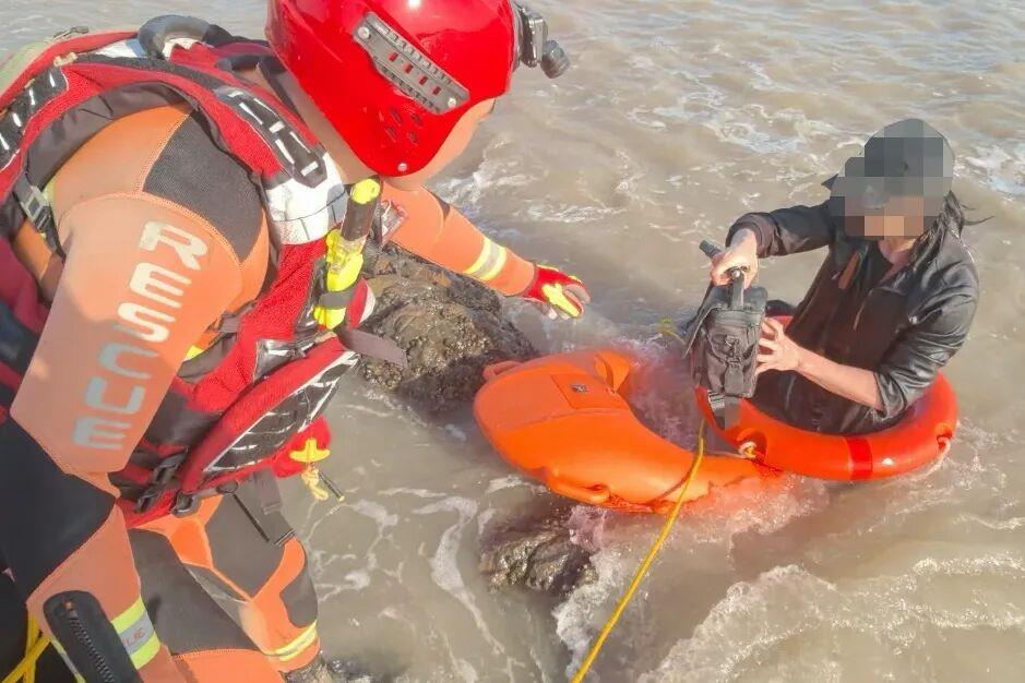 今年3月18日,一位来自上海的“拍客”到浙江宁波象山拍摄日出美景时遇到涨潮,短短几分钟海水上涨约20厘米,被困海上。图源:宁波晚报