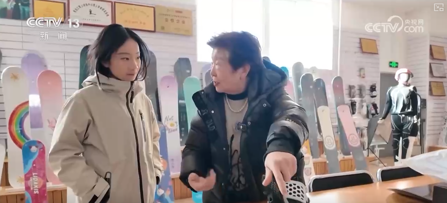 靳惠媛介绍,2002年的时候,她正好是做外贸生意,赶上有一个冬博会,走到一个展位上,全是这种板子。那时候,她没有见过这样的滑雪板。他说刚刚进入中国,在国外特别流行了,就这么进了10块板子。