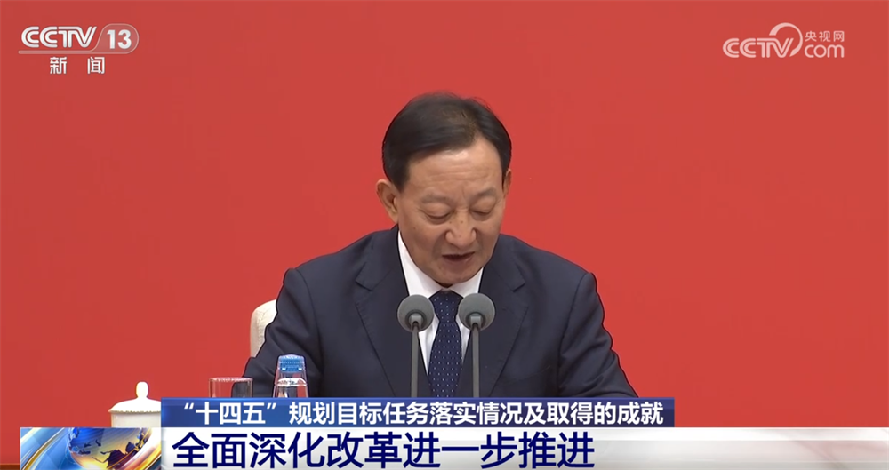 央视网消息:24日上午,中共中央举行新闻发布会,介绍和解读党的二十届四中全会精神。在发布会上,中央政策研究室主任江金权介绍了“十四五”规划目标任务的落实情况和取得的成就。