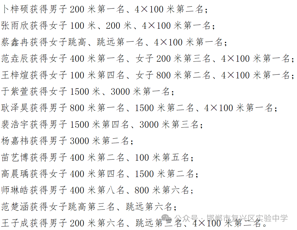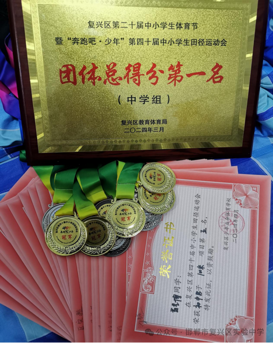 每日新闻网讯:经过两天紧张激烈的比赛追逐,由复兴区教育体育局举办的复兴区第二十届中小学生体育节暨“奔跑吧·少年”第四十届中小学生田径运动会圆满落下帷幕。运动会上,我校运动员团结协作、顽强拼搏,敢于超越,荣获初中组团体总分第一名。