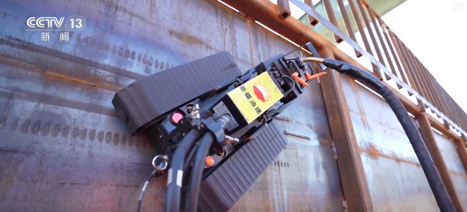 不仅如此,传统石油行业也在年轻人的创新中悄然蜕变。这款最新研发的焊接机器人可以灵活攀上数层楼高的储油罐,完成自主焊接作业。