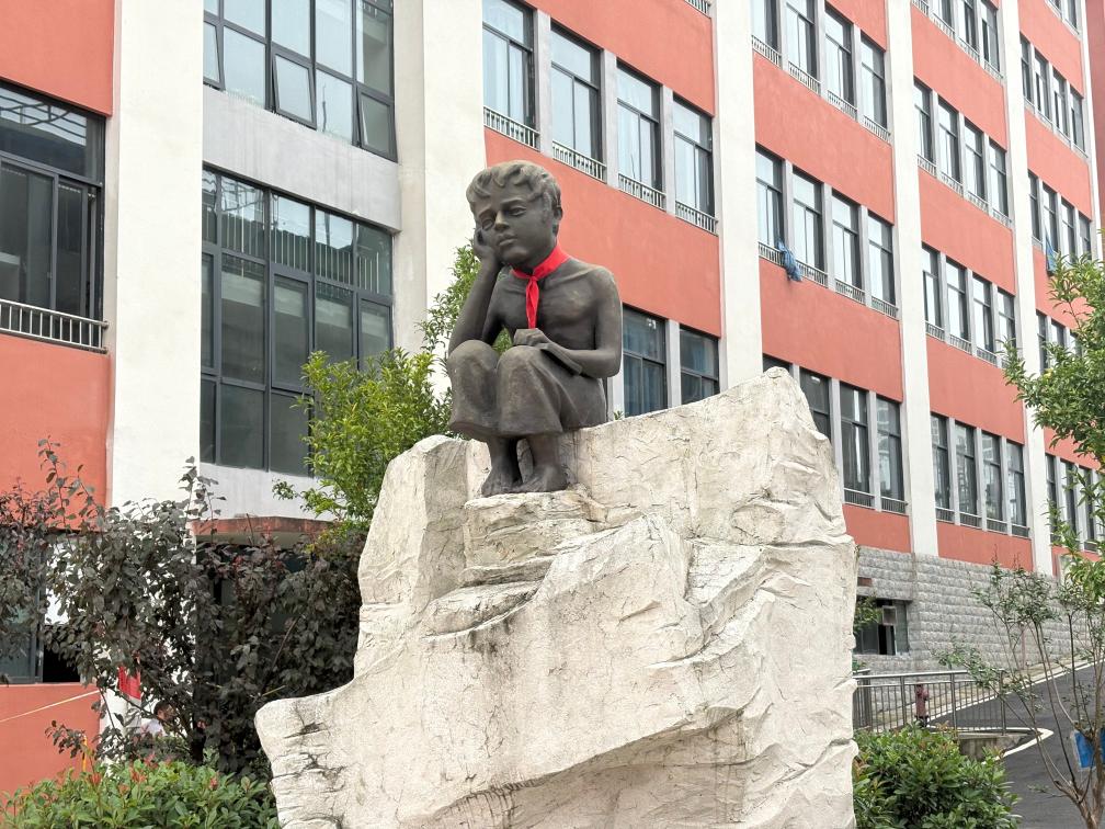 贵州息烽县振中小学里的“小萝卜头”雕像。 新华社记者 李凡 摄