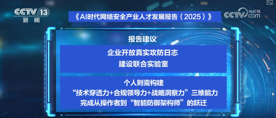 央视网消息:9月16日,在国家网络安全宣传周分论坛上,工业和信息化部教育与考试中心等部门,联合发布了最新的《AI时代网络安全产业人才发展报告(2025)》。