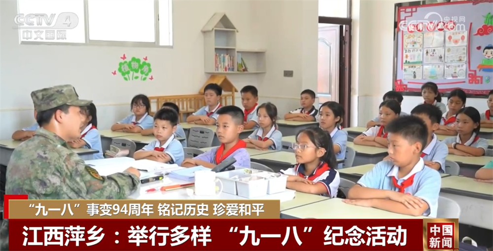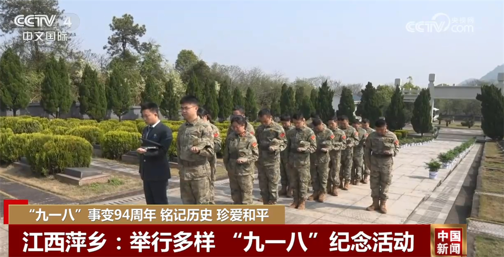 在江西萍乡市上栗县长平乡福寿小学,县人武部工作人员为同学们授课,带领大家回顾“九一八”事变的悲痛历史,了解国防安全知识,感受中华民族的不屈精神,在孩子们心中播下爱国的种子。在莲花县革命烈士陵园,官兵们向革命先烈敬献鲜花,脱帽鞠躬并默哀,表达对革命烈士的深切怀念和崇高敬意。