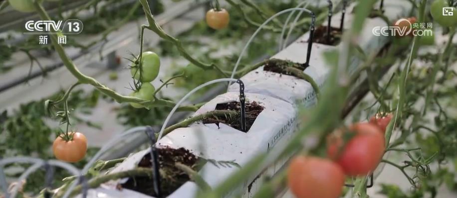 为番茄量身打造的生长环境让生产效率大大提升。工作人员告诉记者,他们采用无土栽培的方式,不仅降低病虫害发生几率,还能精准控制水肥使用量。一亩地的番茄能产出6万斤左右,比普通蔬菜大棚高出2到3倍。