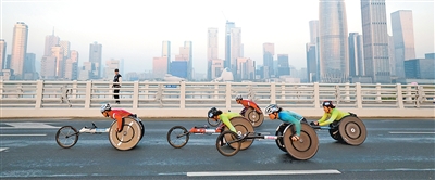 残特奥会女子全程马拉松T54级参赛选手在比赛中。新华社记者 毛思倩摄