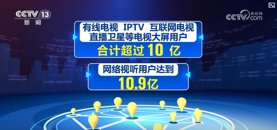 “十四五”时期,我国广播电视和网络视听两大业务深度融合、协同发展,我国在用户、内容、产业等规模上已经成为广播电视和网络视听大国。目前,有线电视、IPTV、互联网电视、直播卫星等电视大屏用户合计超过10亿,网络视听用户达到10.9亿。