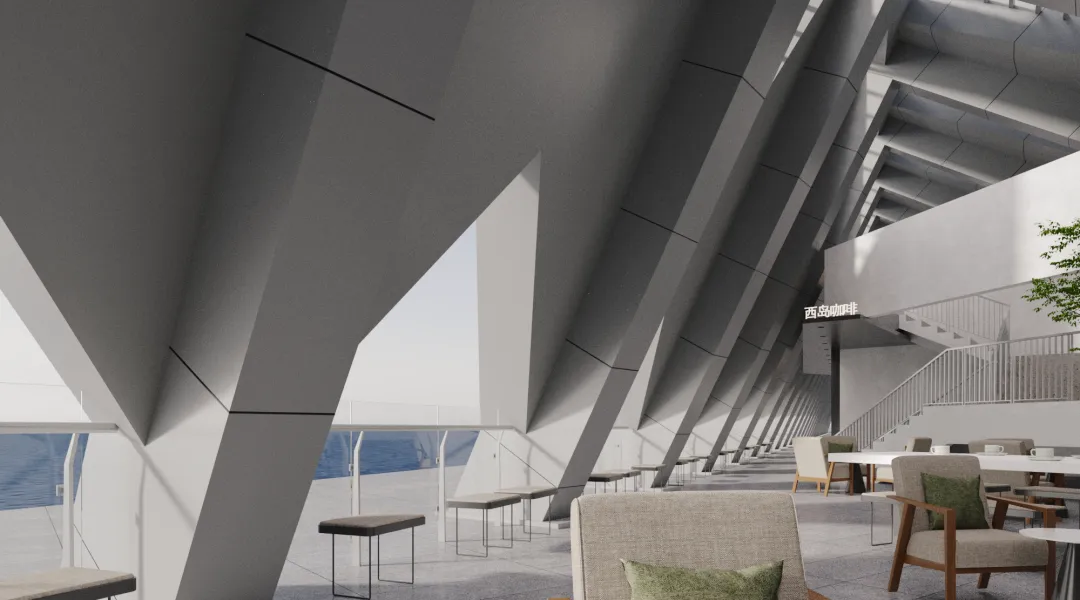 首先可前往三楼观景平台,这里是与深中通道标志性构造物——深中大桥合影的绝佳位置,站在这里既能远眺双塔横跨伶仃洋的壮阔姿态,也能畅享西人工岛与周边海景的交融风光,随手就能拍出“超级工程+海天一色”的“超级大片”。