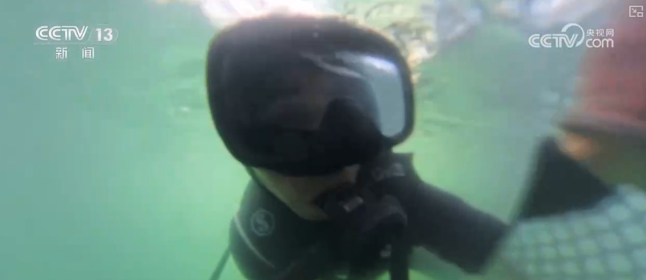 在乐东黎族自治县龙栖湾碧波之上,海洋牧场的工作人员正在对2025年4月份投放的鱼苗进行日常的饲料投喂作业潜水员则下水检查养殖网衣是否有破损,观察鱼群是否有异常,巡检养殖装备各功能是否运转正常。