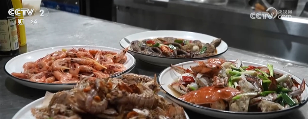 文旅热还带火了当地的餐饮业和民宿。眼下正值开海季,在当地餐厅小吃店,各式各样的海鲜琳琅满目,红烧杂鱼、香煎梭子蟹、椒盐皮皮虾、白灼剑虾……鲜咸甜香一应俱全。不少游客还把出海捕捞的海鲜拿到餐厅代加工,品尝自己劳动的成果。