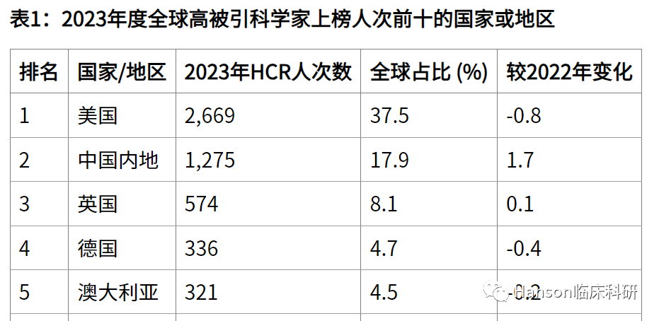 1,有7位从事癌症研究,尤其是肺癌、肝癌等常见的癌症。2,有4位在通过RCT验证癌症的靶向治疗从而获得更精准的个体化治疗方面做了更多工作。3,临床流行病学,以及基于队列的遗传-表观遗传研究、基因型-表型研究同样备受关注,由此寻找早期诊断和优化治疗的生物标记。这些研究充分展示了癌症治疗上已经取得的突破,同时也孕育着未来突破的新靶点。【1】 https://clarivate.com.cn/2023/11/15/hcr2023/本文只是分享和解读公开的研究论文及其发现,以作科学文献记录和科研启发用;并不代表作者或本公众号的观点。为了给大家提供一个完整而客观的信息视角,我们有时会分享有冲突或不同的研究结果。请大家理解,随着对疾病的研究不断深入,新的证据有可能修改或推翻之前的结论。