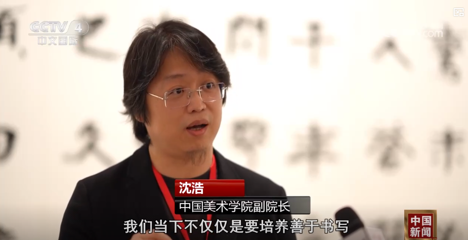 中国美术学院副院长 沈浩:我们当下不仅仅是要培养善于书写,能够写出一笔好字的书家,更重要的是在书家的培养过程中间去激发人的创造力,把这种创造力转化成在做事、成人的方方面面,成为社会推进的一种创新力的这种培养。
