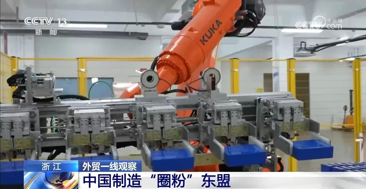宁波的一家机器人加工车间,工人们正加紧生产发往马来西亚的半导体晶圆检测仪。这款产品凭借高精度、小体积的核心优势,在东盟市场颇受青睐。