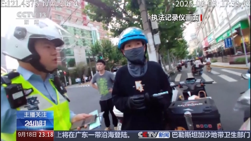 上海市公安局普陀分局交管支队一大队民警 黄怡伦:外卖驾驶员违反了交通法规,闯红灯,并且这个穿过路口的一个角度,正好被一辆同方向的机动车给遮挡,叫作“鬼探头”。这种情况下,机动车驾驶员紧急制动也是避让不及的。